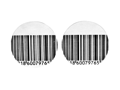 Круглая защитная радиочастотная этикетка с диаметром 40мм может поставляться как с ложным штрихкодом, так и без штрихкода.